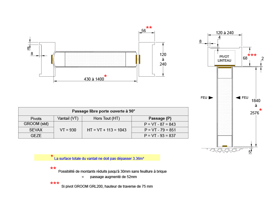 Hors-tout bti Hauteur depuis niveau fini Coupe-feu sous conditions Pare-flamme Largeur x Hauteur Largeur x Hauteur Largeur x Hauteur.